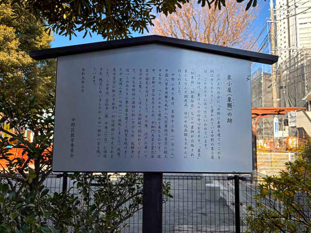 江戸名所図会に「中野に象厩を立ててそれを飼おせられし」とある象小屋。当時、象は大変珍しい動...