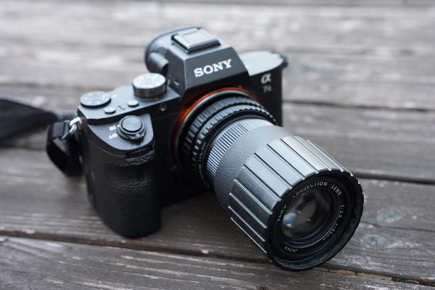 代替品としてそれよりも安価に入手可能なレンズもありますが、それでも価格が高いです。そこで、1960年代~70年代に普及していたスライドプロジェクターのレンズを改造してミラーレスカメラに装着して撮影しました。