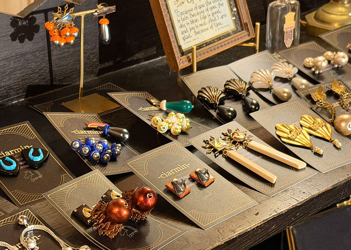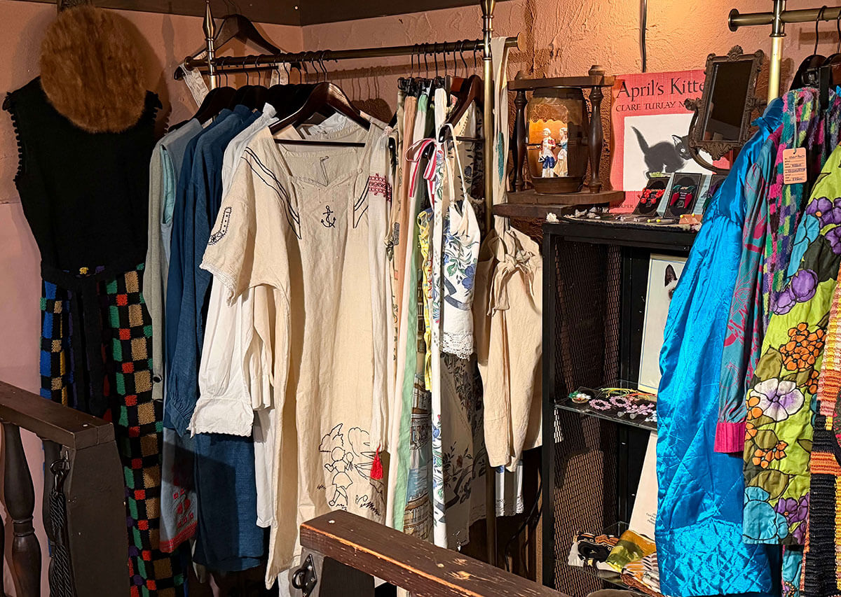 檜山さんが、お店の一部分で古着屋をやってみないかと入江さんを誘ったのがきっかけで「解」ははじまった。 もともと古着や手仕事が好きで、リメイクやアクセサリー作りをしていたので、ルネッサンスの空気感なら、自分が好きなものとも馴染むのではないかと思い、始めることにしたという。独自のルートで仕入れる世界各地のヴィンテージの商品は、確かにルネッサンスの雰囲気にぴったり。中には100年も前のフランス製のコットンの服に手仕事で刺繍を施したものなどもおいてある。
