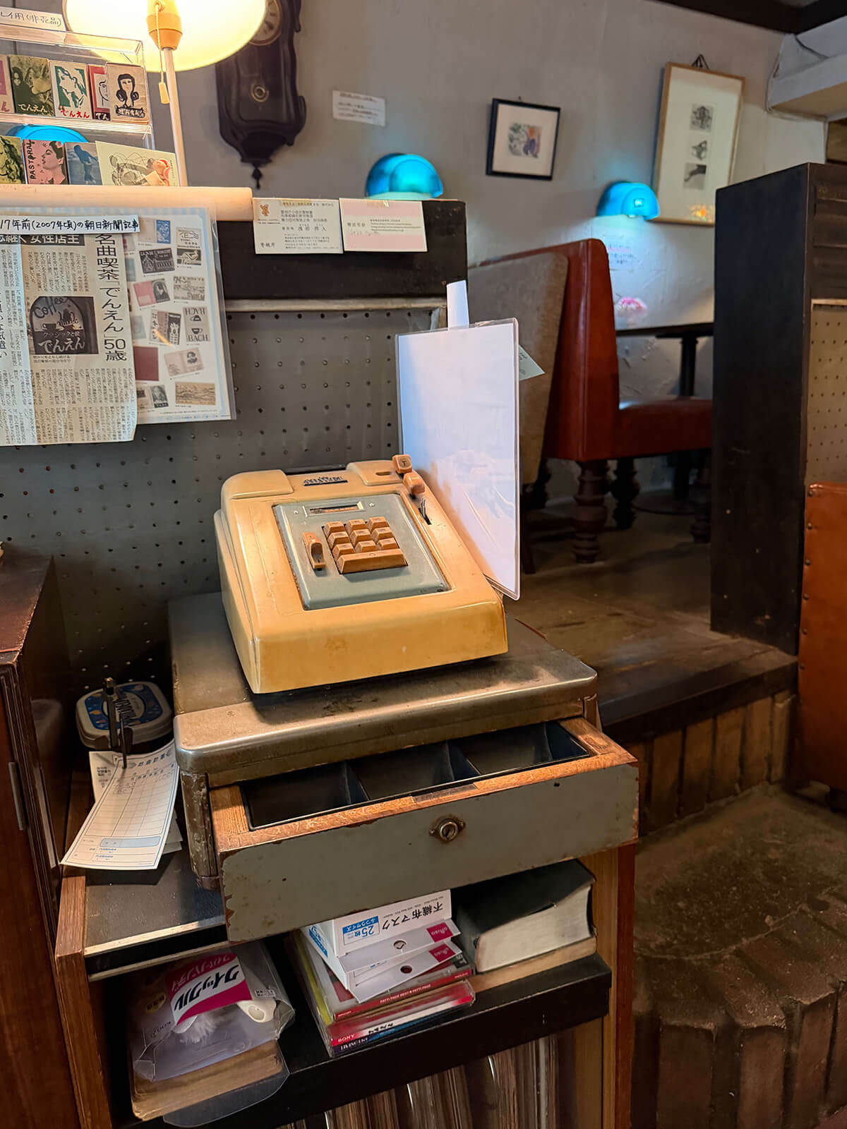 店内には年季の入った道具たちが息づいている。開店当時から使い続けているドイツ製のレジスターは今も現役だ。そのたたずまいが評価されて、竹中さんの映画以外にも、ドラマのロケ撮影に使われることもあるという。